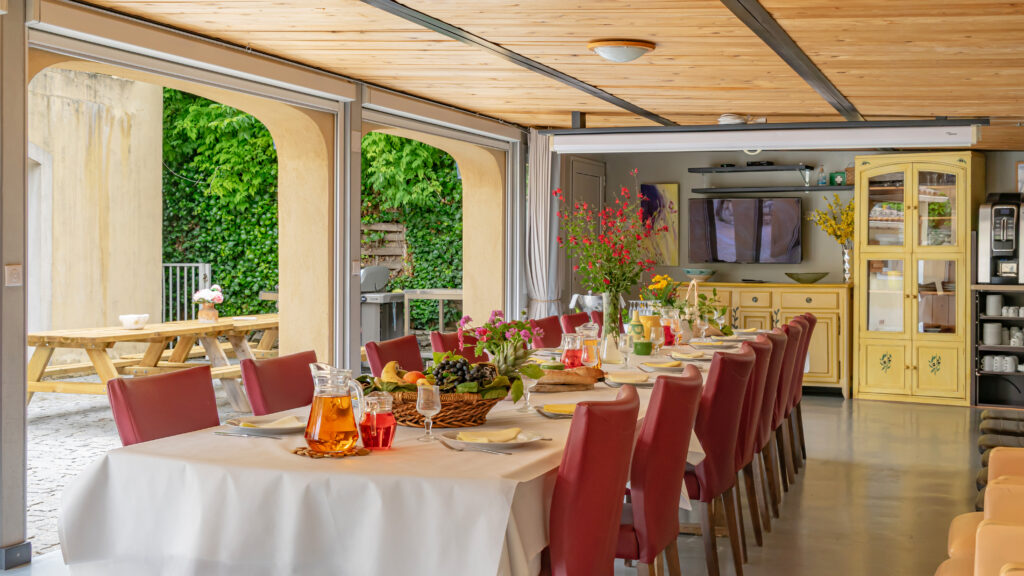 Pour les groupes ou grandes familles, individuels, séminaire d’entreprise, nous proposons 5 options : (Pour info : En réservant avec la salle commune la propriété vous est automatiquement privatisée quel que soit le nombre de logements ou de chambres.)